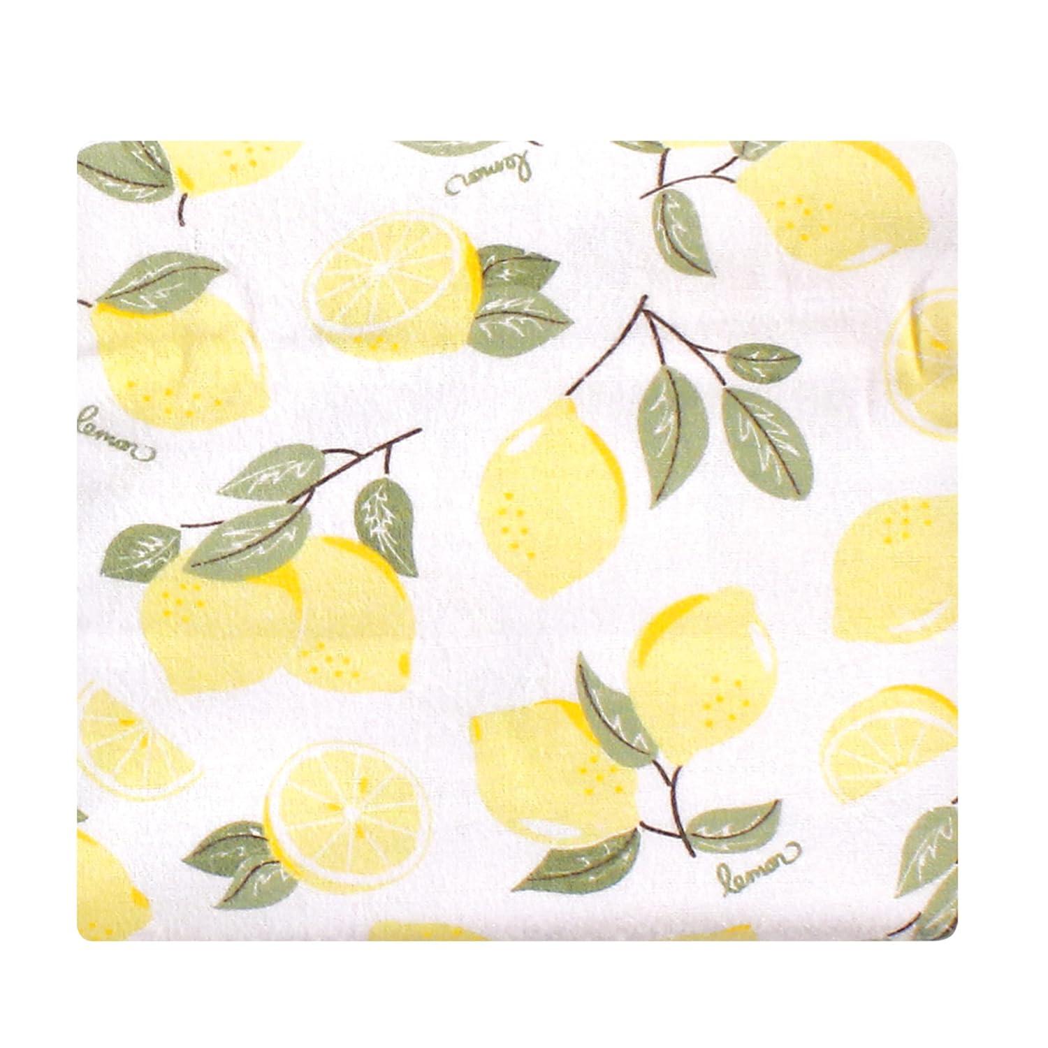 Little Treasure Hudson Baby Cotton Poly Flannel Receiving Blankets Multipack, Green Eucalyptus, 30×30 inches(Yellow Lemons)