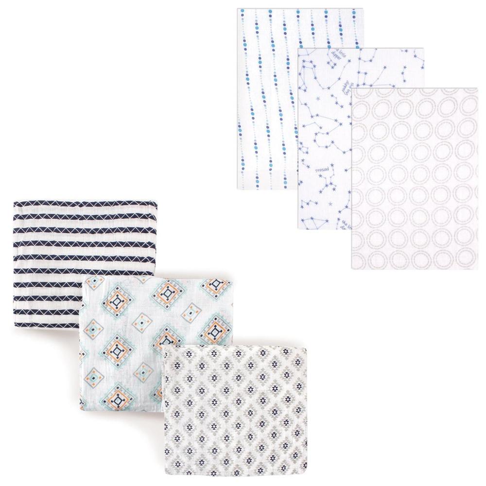 Muslin Swaddle Blanket 6-Pack(Blue Constellation/Aztec)