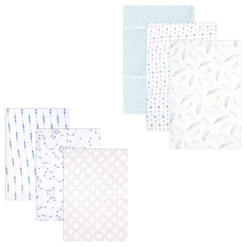 Muslin Swaddle Blanket 6-Pack(Blue Feather/Blue Constellation)