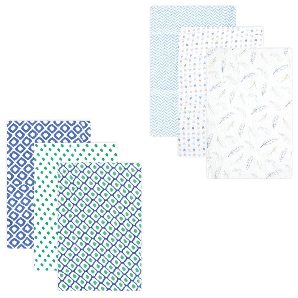 Muslin Swaddle Blanket 6-Pack(Blue Green/Blue Feather)