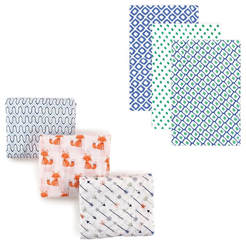 Hudson Baby bundles save families money by offering lower prices on everyday baby essentials when buying in bulk purchases. Hudson Baby muslin blankets are made of the highest quality muslin fabric so they are super soft, breathable and versatile baby blankets. We recommend moms use our muslin blankets for swaddling, nursing cover, stroller cover, tummy time and more. Our 6-pack muslin blanket bundle offer moms more unique prints and patterns for a special value price.