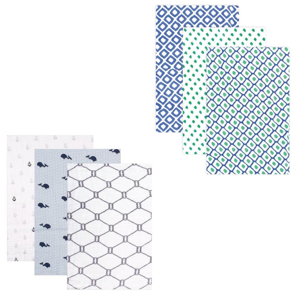 Muslin Swaddle Blanket 6-Pack(Blue Green/Whale)