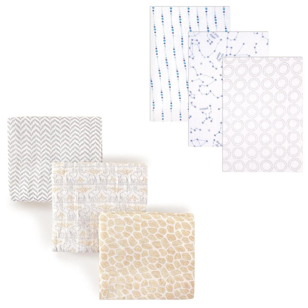 Muslin Swaddle Blanket 6-Pack(Elephant/Blue Constellation)