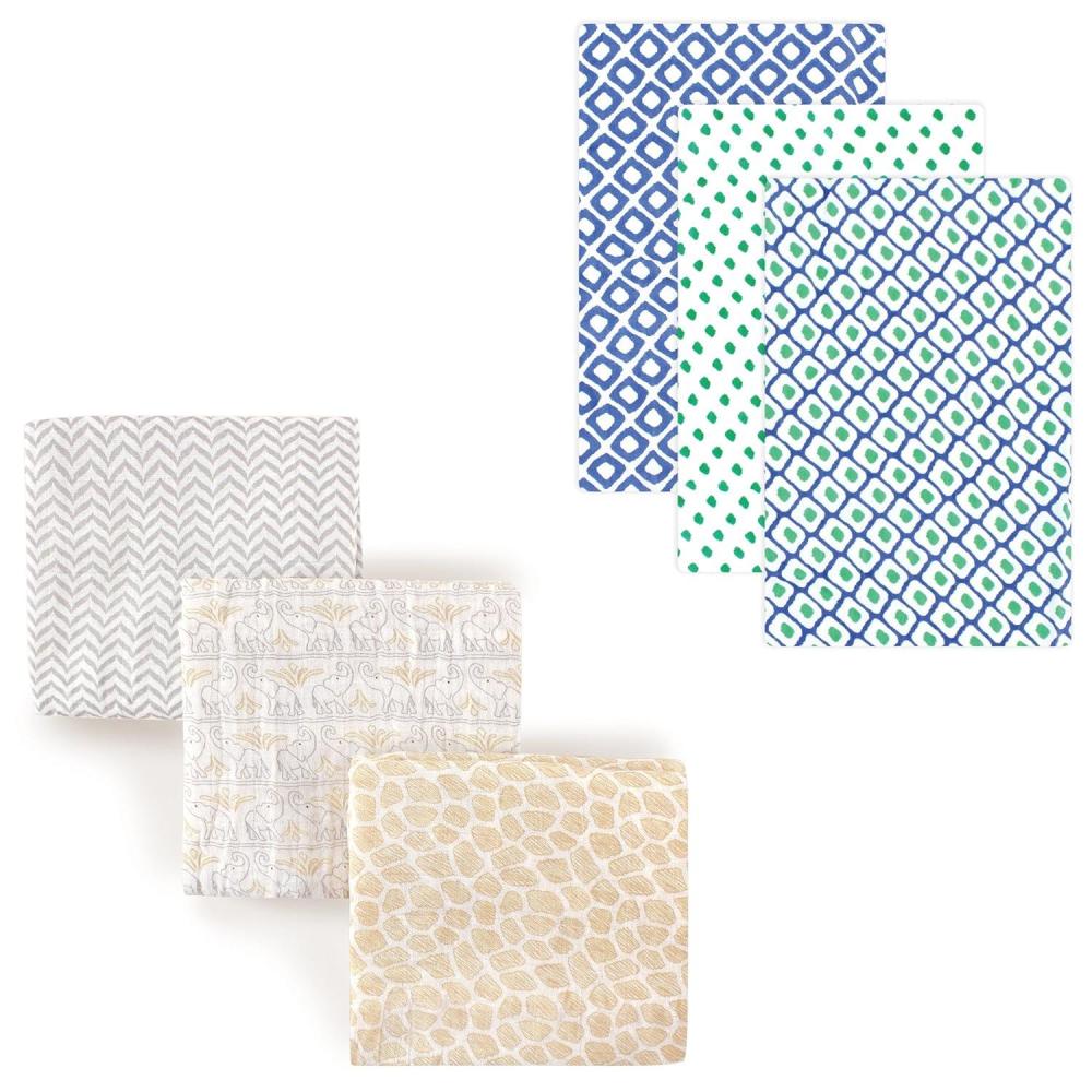 Muslin Swaddle Blanket 6-Pack(Elephant/Blue Green)