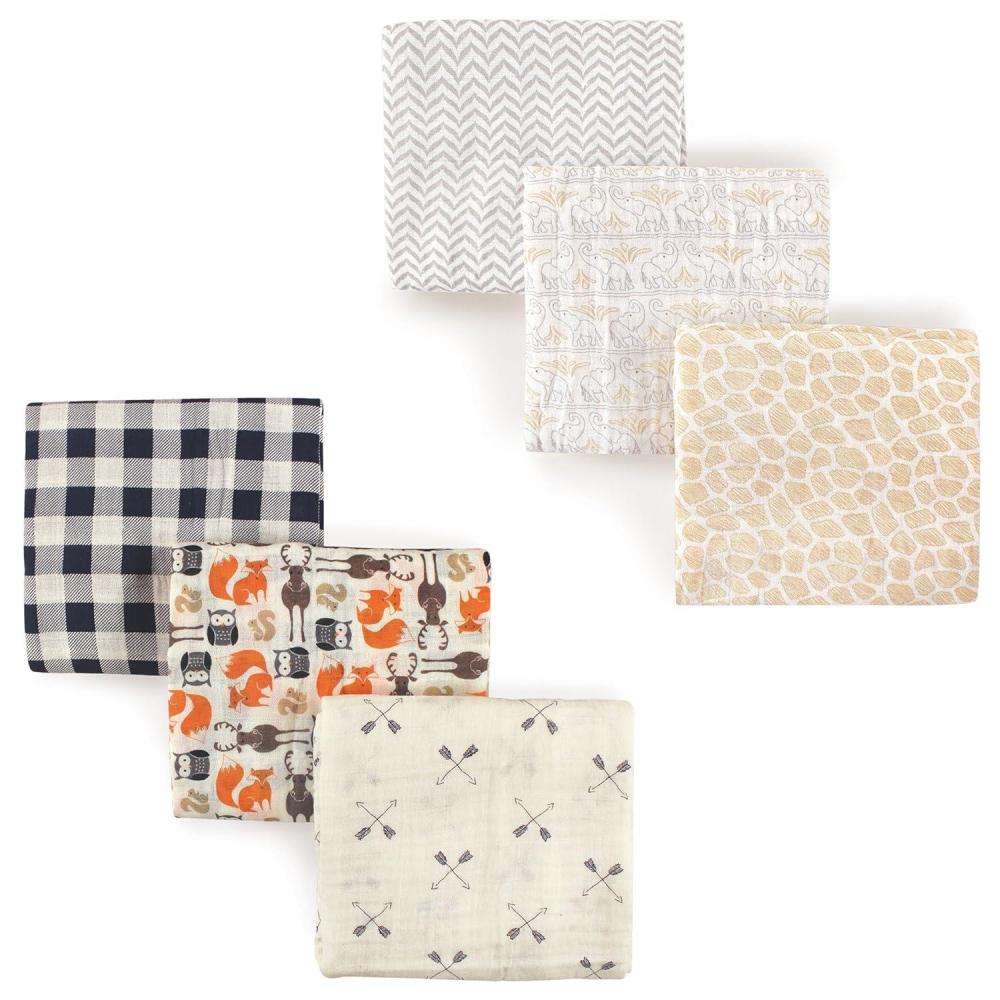 Muslin Swaddle Blanket 6-Pack(Elephant/Foxes)