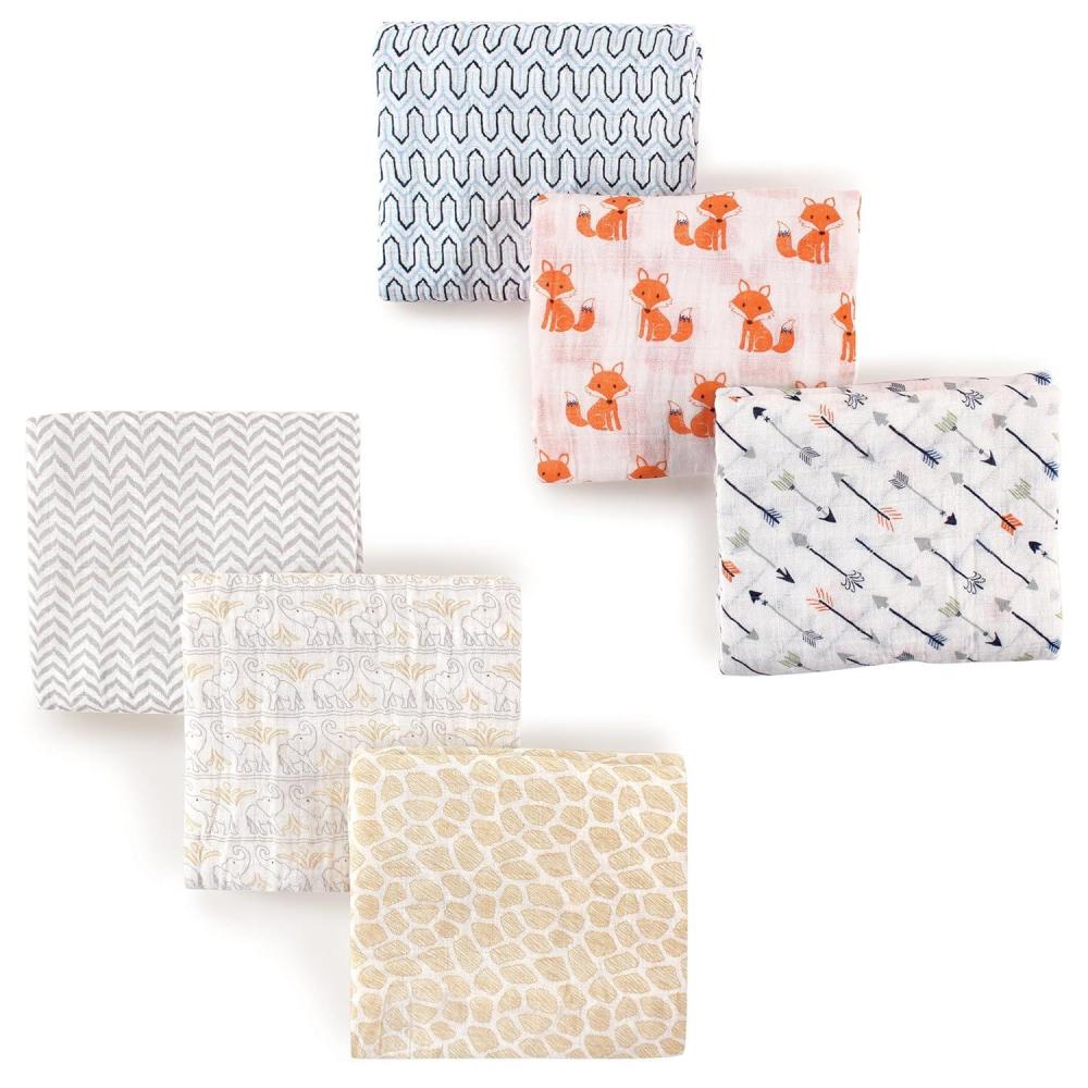 Muslin Swaddle Blanket 6-Pack(Elephant/Foxes)