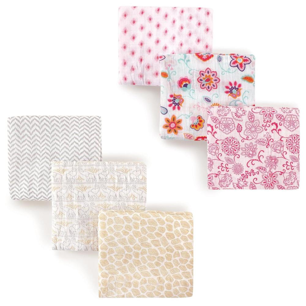 Muslin Swaddle Blanket 6-Pack(Elephants/Floral)