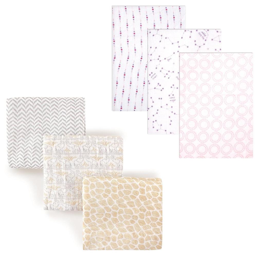 Muslin Swaddle Blanket 6-Pack(Elephants/Pink Constellation)