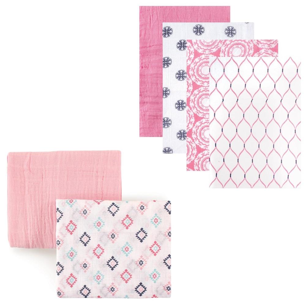 Muslin Swaddle Blanket 6-Pack(Pink Medallion/Pink Aztec)