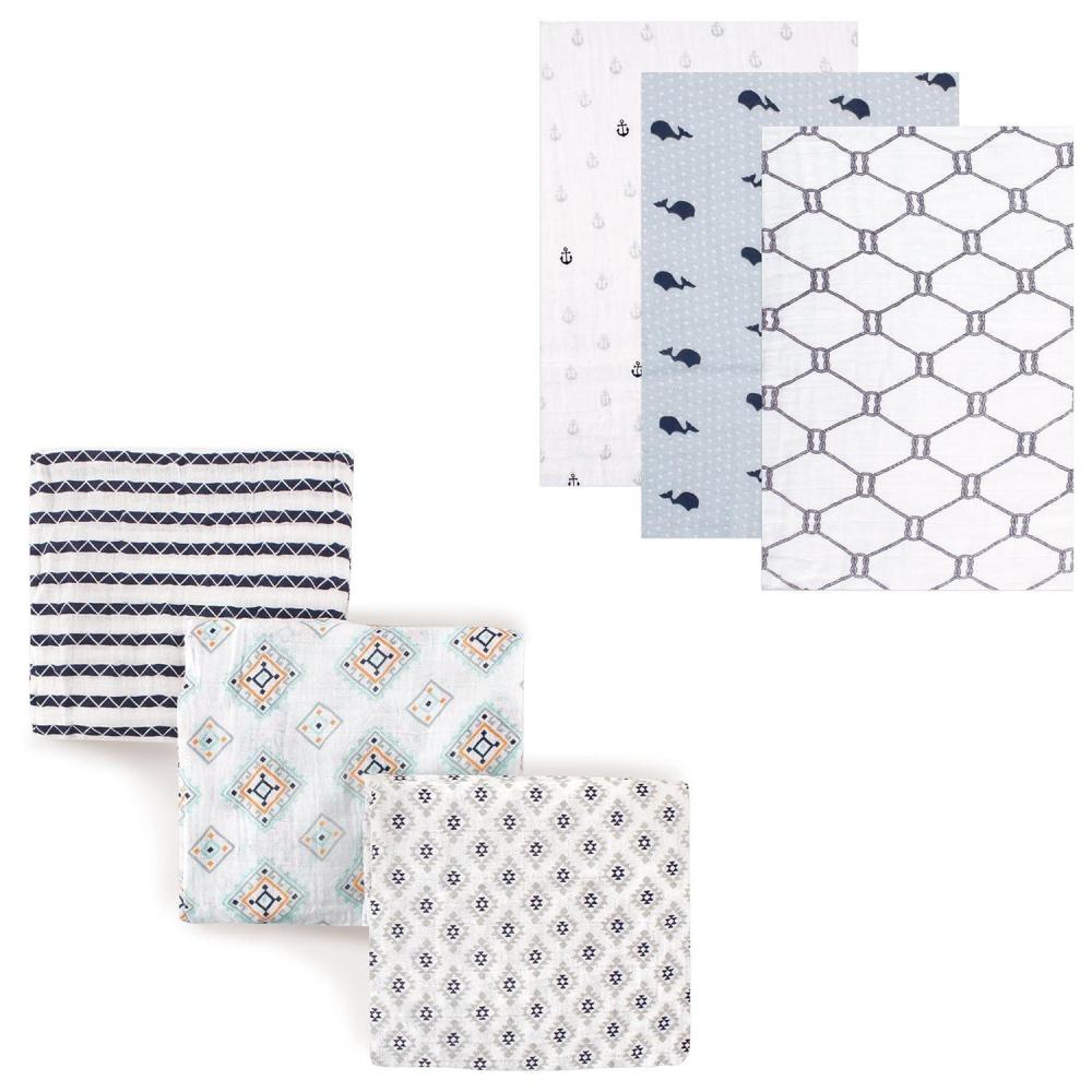 Muslin Swaddle Blanket 6-Pack(Whale/Aztec)