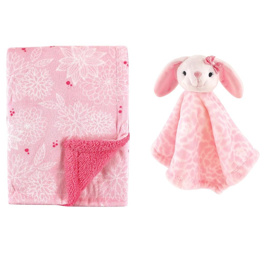 Plush Blanket with Security Blanket(Floral/Pink Bunny)