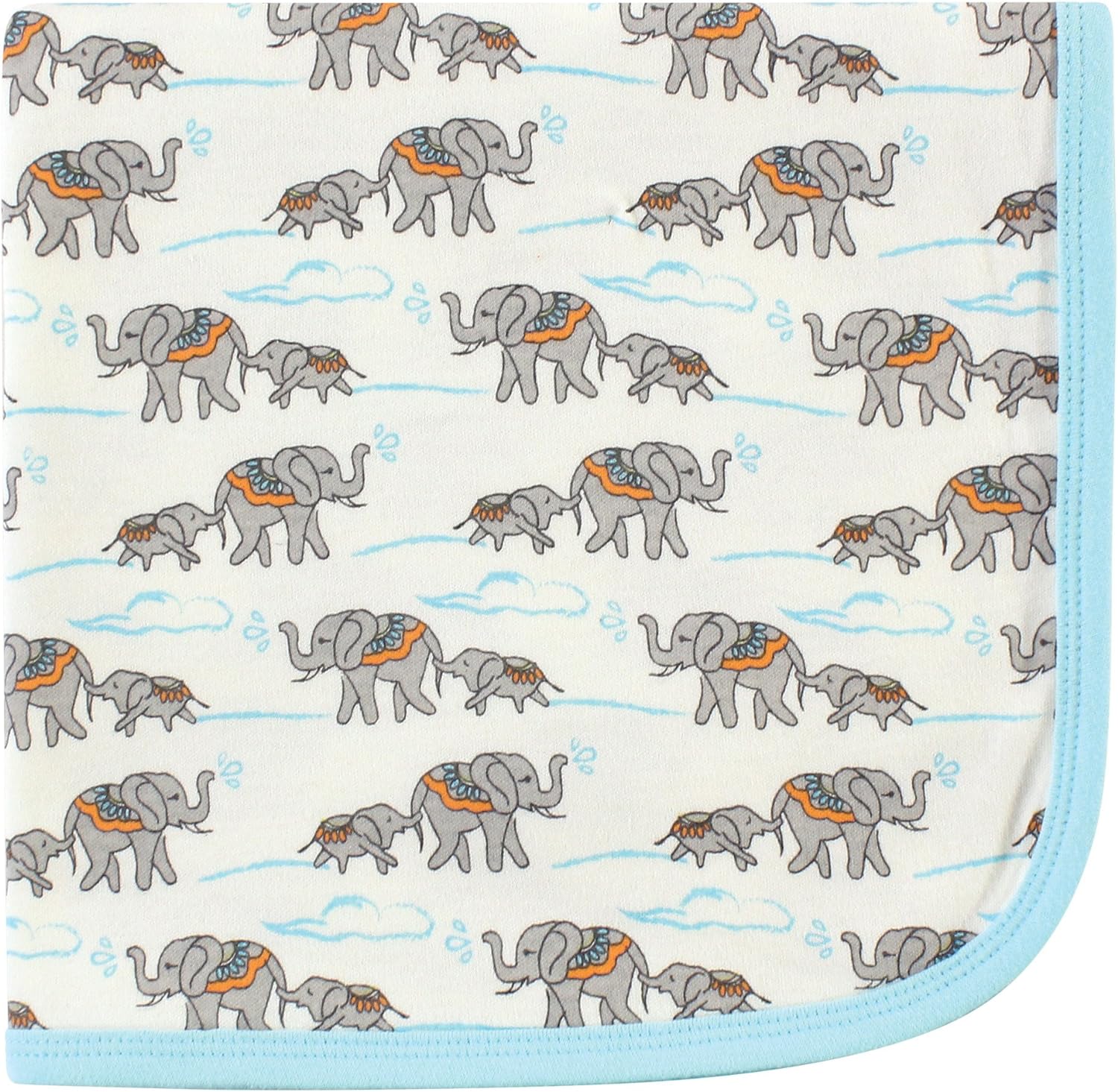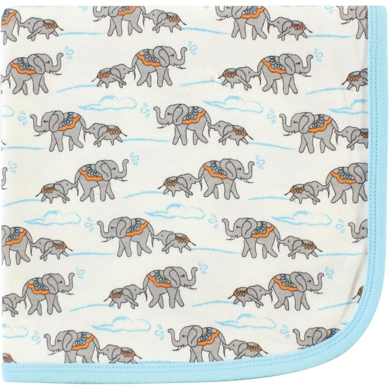 Touched by Nature Unisex Baby Organic Cotton Swaddle, Receiving and Multi-purpose Blanket, Feather, One Size(Elephant One Size)