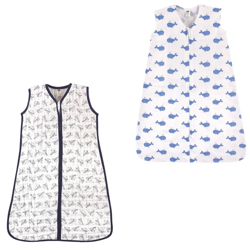 Wearable Sleeping Bag Muslin & Jersey Cotton, 2-Pack(Paper Airplane/Whale 18-24 Months)