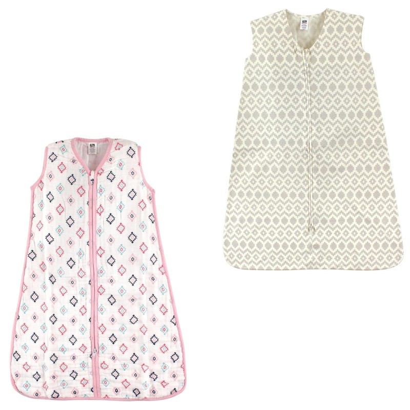Wearable Sleeping Bag Muslin & Jersey Cotton, 2-Pack(Pink Aztec/Aztec 0-6 Month)